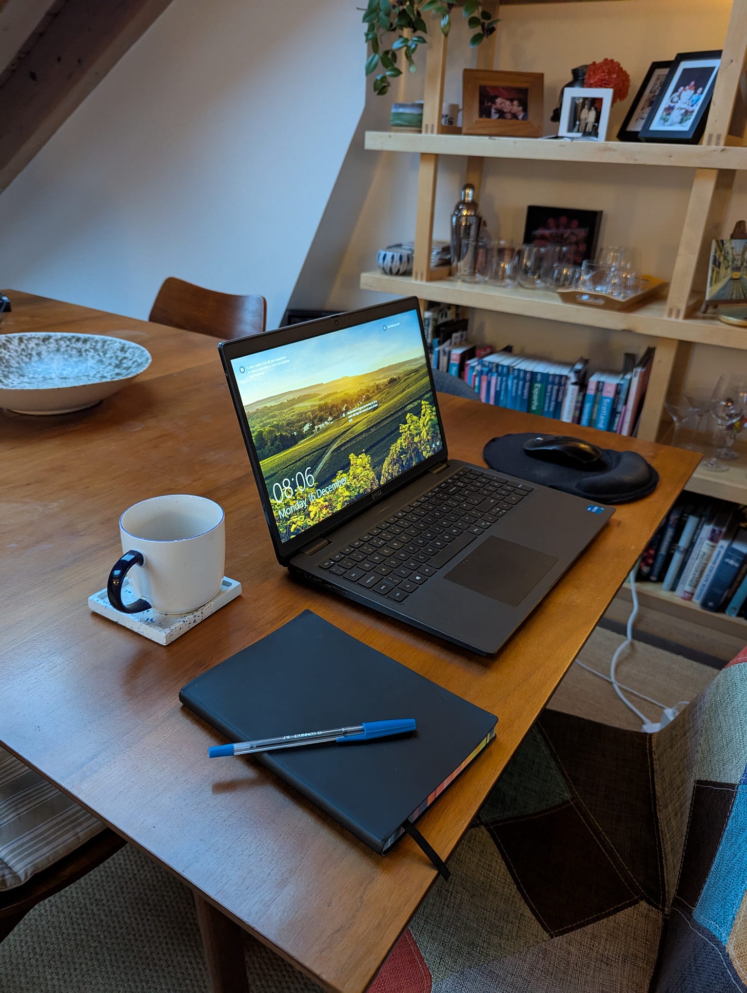 Boil water, grind coffee, pull out milk and eggs from the fridge. Two buttered up slices of toasted Turkish bread. Spotify on a random playlist or an audiobook, or perhaps BBC Radio 3’s “Night Tracks”.