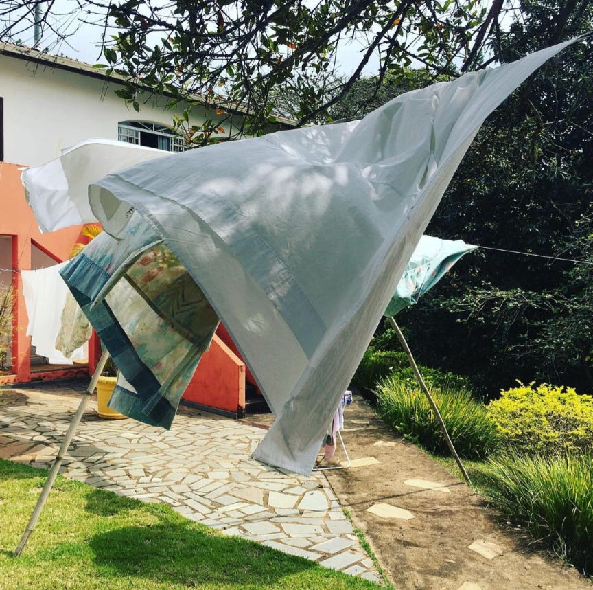 Mom irons clothes. The day's wash dries on the line; heavy clouds gather around the Mantiqueira mountains. Cats come and go through the library’s window.